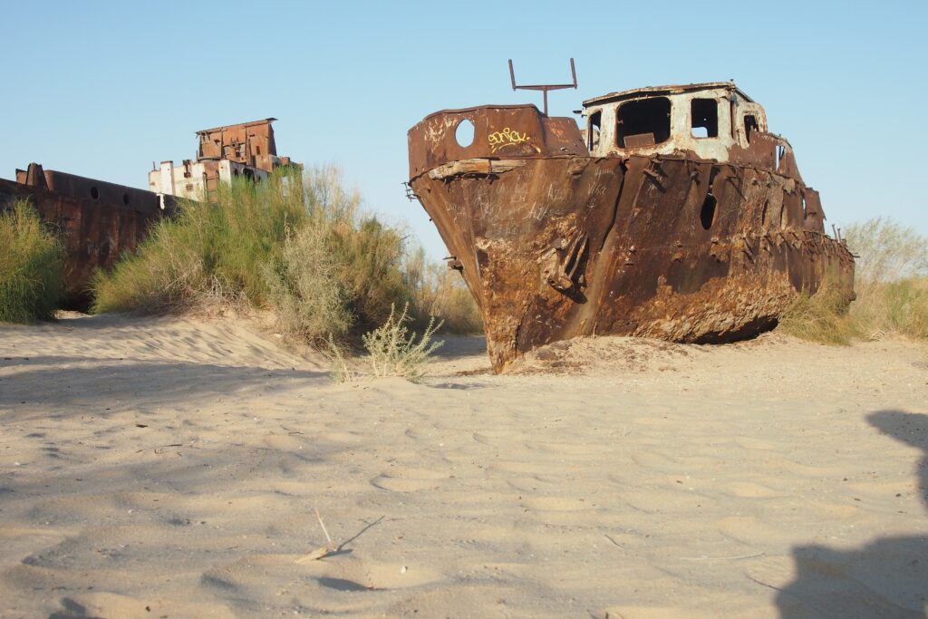 Der Aralsee. Wer heute Bilder von verrottenden Fischerbooten kennt, die mitten in der Wüste Zentralasiens vor sich hinrosten, ahnt, was hier geschehen ist. Das Aralmeer war einmal der viertgrößte Binnensee der Welt — 68.000 Quadratkilometer Wasser, Heimat einer reichen Fischereiwirtschaft, klimatisch prägend für eine ganze Region. In den 1960er-Jahren beschloss die Sowjetunion, die beiden Zuflüsse des Sees — Amu Darya und Syr Darya — zur Bewässerung gigantischer Baumwollfelder umzuleiten. Was folgte, ist eine der größten vom Menschen verursachten Umweltkatastrophen der Geschichte: Bis Mitte der 2010er-Jahre hatte der See 90 Prozent seines Wasservolumens verloren. Er zerfiel in vier kleinere Wasserkörper. Zurück blieb die Aralkum — eine toxische Salzwüste, die sich über Tausende Quadratkilometer erstreckt und deren Stürme Salz und Pestizide über die gesamte Region verteilen.